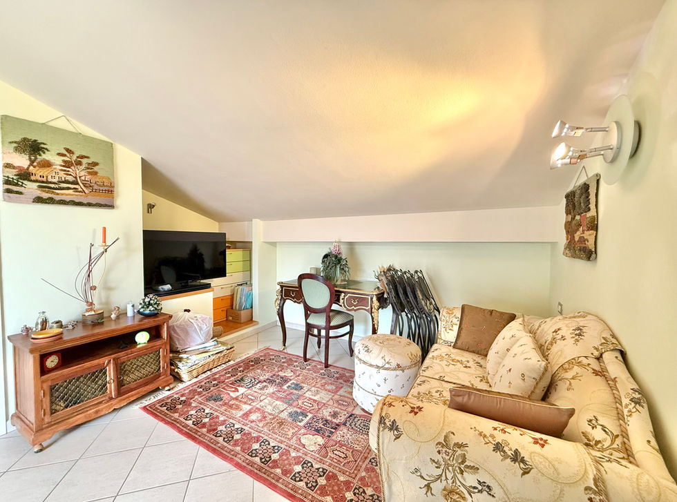 Salendo al piano superiore, troviamo un’ulteriore stanza, perfetta come terza camera da letto o zona relax, servita da un secondo bagno completo.