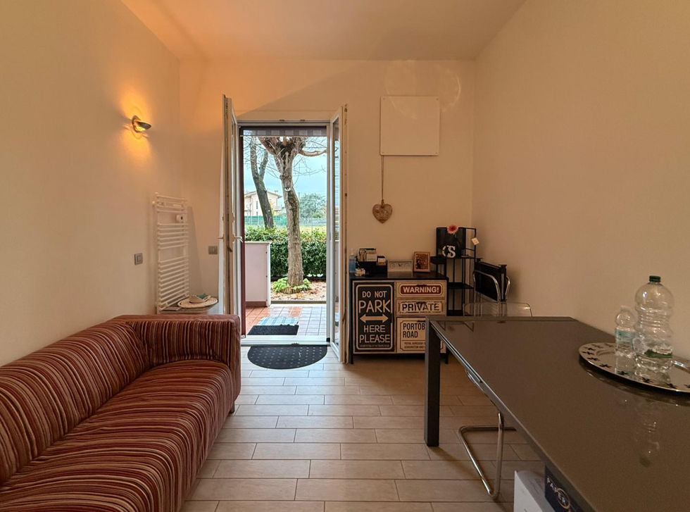 All’esterno si trovano un balcone, un posto auto in corte privata (vantaggio importante in zona mare) e un deposito bici condominiale.